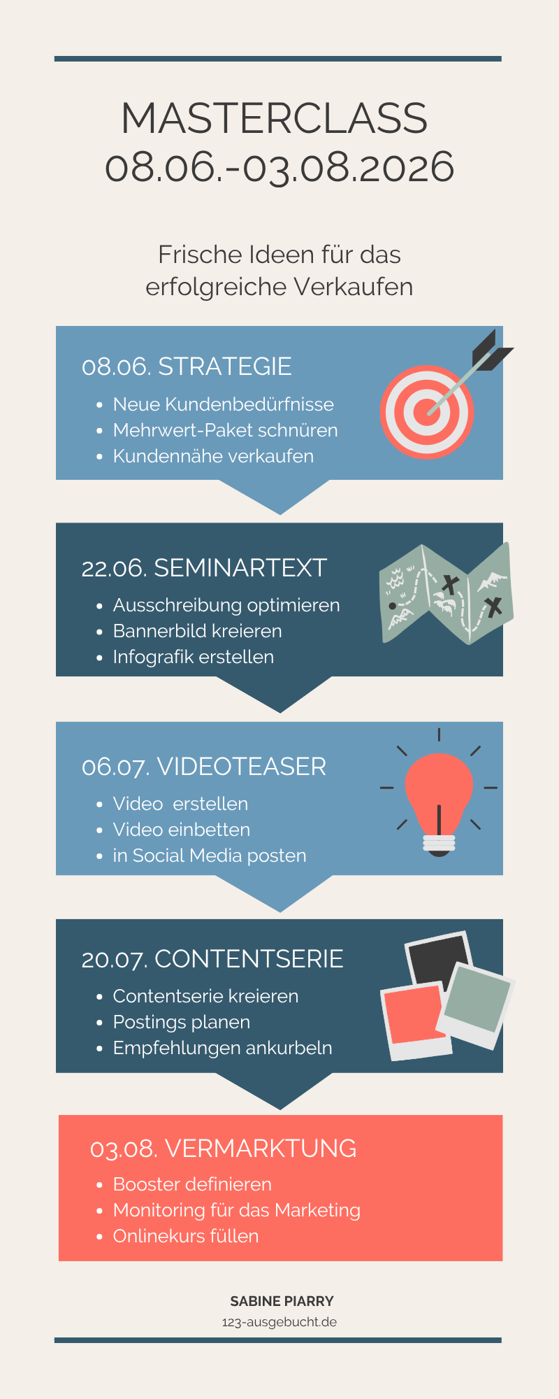 Die nächste Masterclass Seminarvermarktung ist für 2028 geplant. Also nicht aufschieben, sondern loslegen.